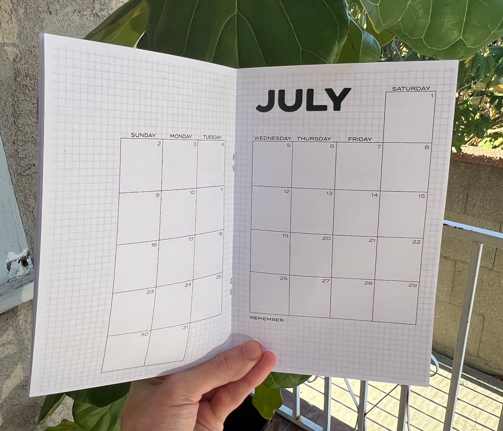 It's based on how I've designed monthly pages in my own planners. There's room for extra notes or doodles or little sticky notes or decorations if that's your jam. I find a lot of value and comfort in a planner or notebook I can hold in my hand, an excuse to look as far away from a screen as possible, a reason to use a pen and journal, etc. If that's what you're looking for, too, I hope you like this one!