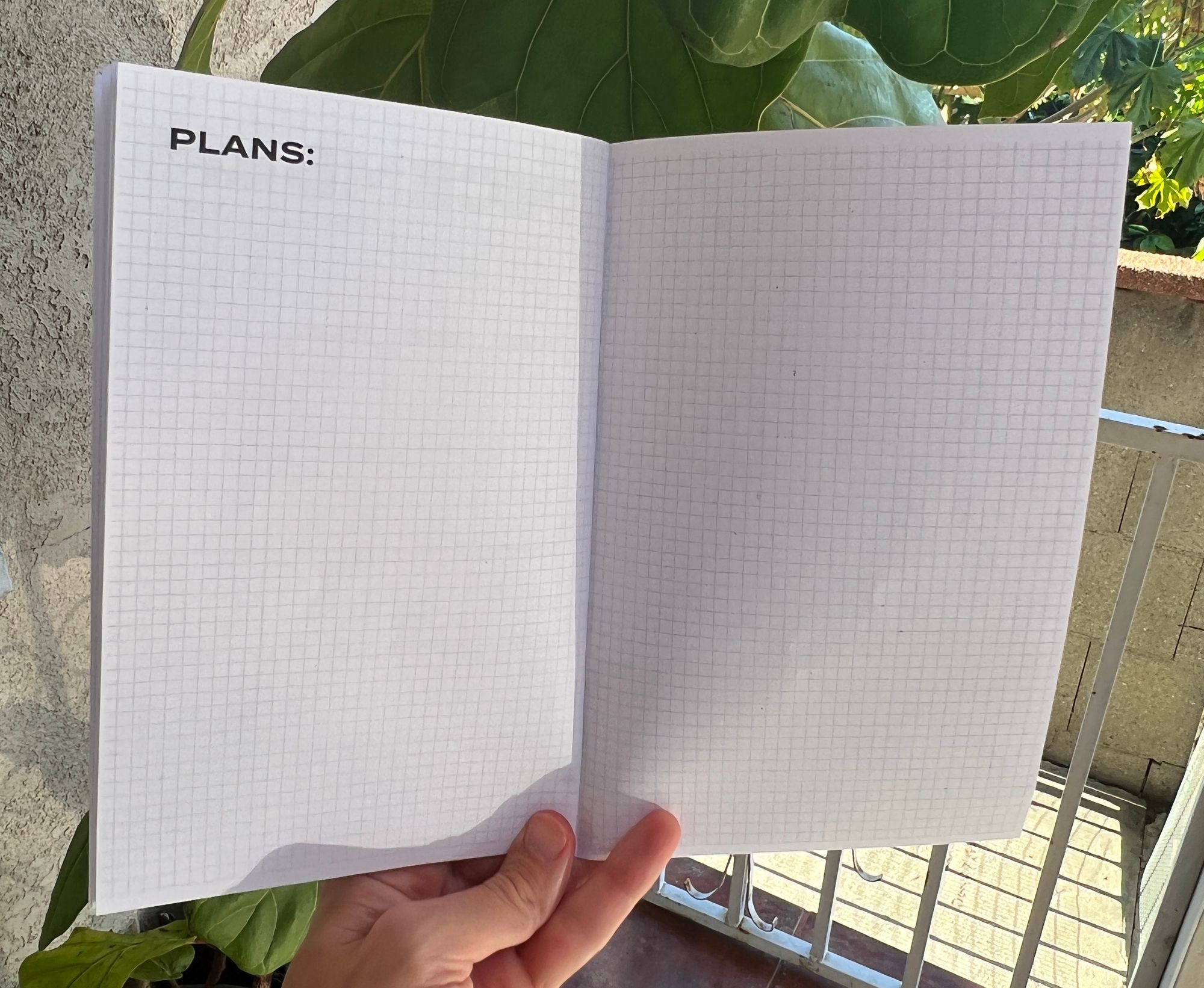 It's a digital download that you can print at home (or at a print shop for a few bucks). It's my compromise between making a new zine and designing a full weekly planner. I managed to pull this off and I think it looks cool! It's 32 pages (8 sheets of paper) including the cover and a few pages for notes (aka plans) at the end.