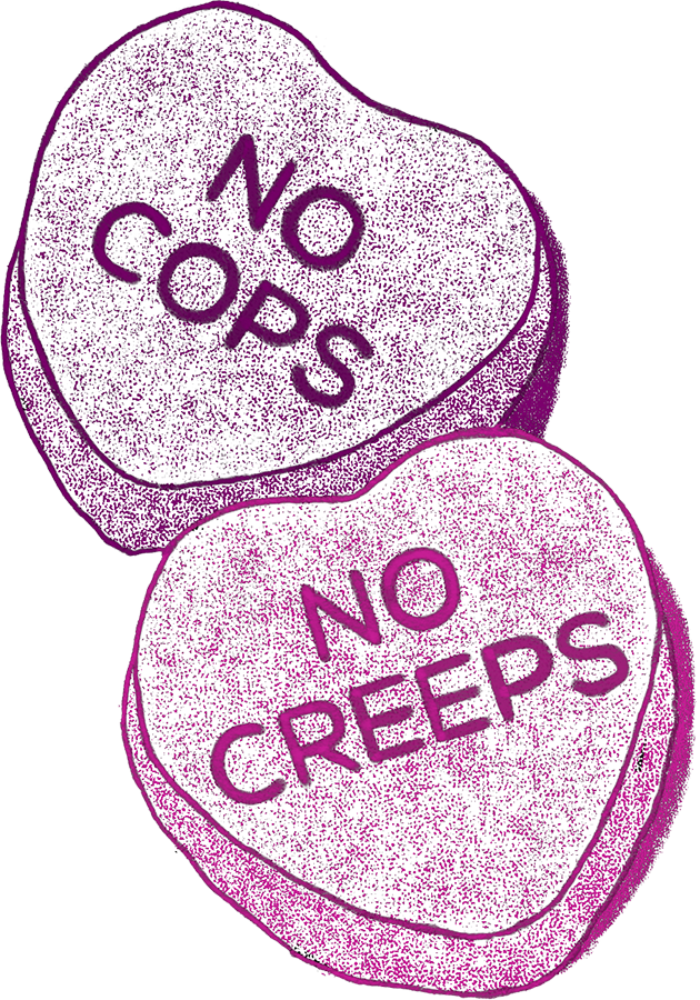 The one bright side, spending so much time at home lately has let me successfully complete some projects and I've had time to just fire off a couple of fun items to add to my webstore. One is a sticker that says "No Cops. No Creeps" on candy hearts. The other is a camping mug that says "FUUUUUUUCK" in my warpy lettering. They're both moods.