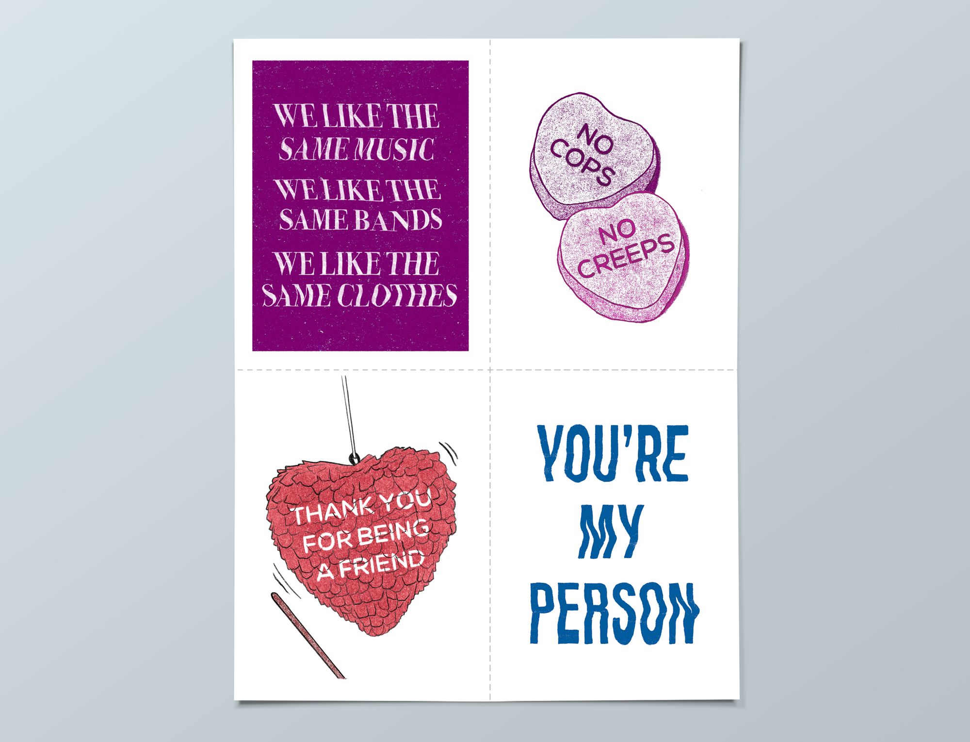 If you’re looking for Valentines, I have some printable ones up on my shop and Etsy. I’ve always wanted to make Valentines that you can just send to your friends, and what better time than when you probably haven’t been able to hang out as much as you’d like. The download comes with both greyscale and color versions along with individual images if you want to send them digitally.