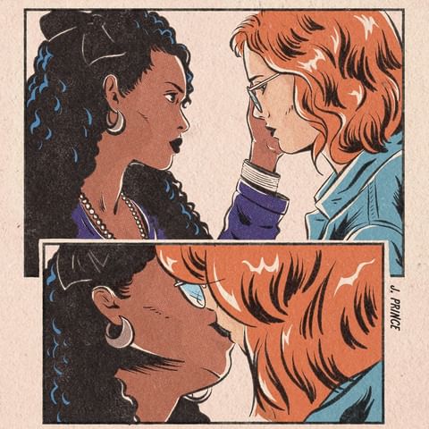 Lastly, if you need more queer art in your life, I came across the work of Brazilian artist Jenifer Prince this morning and it’s the contemporary lesbian pulp art I’ve always wanted! The image below is a Black Mirror “San Junipero” reference and you know that I’m here for that.