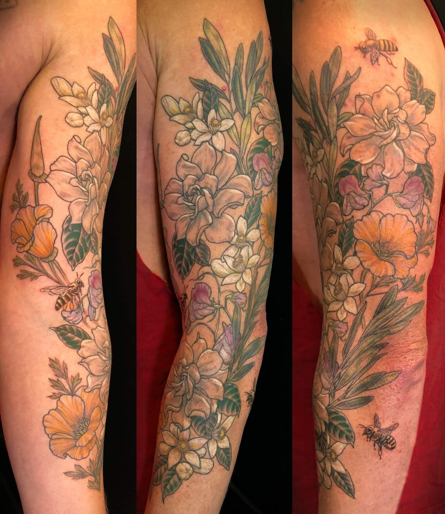 I've been looking for an artist to do a complementary plant sleeve on my right arm to pair well with the magnolias I have on my left arm. Enter, Sara Lou! As soon as we're home from tour we get started. 🎉