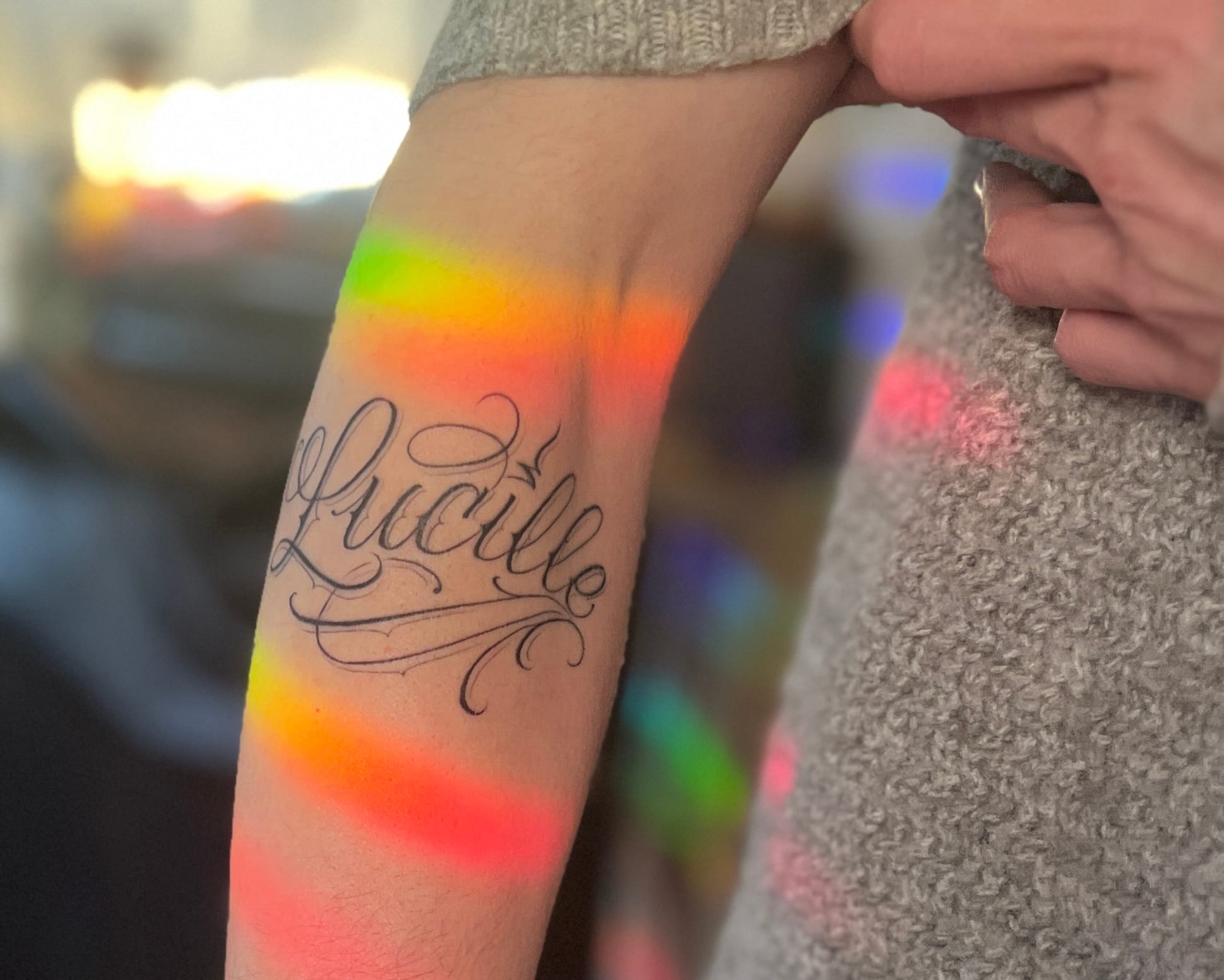 A couple of weeks ago I finally got Lucy's name tattoo'd on my arm. Lucille. See photo above. I wanted to have it done by someone specializing in typography and script work. Em's work is amazing and she hand-drew the lettering onto my arm. Right on the spot. Lucy can't come with us on this next tour but maybe this is my way of bringing her with me. Em is based in Los Angeles but travels quite a bit so keep an eye out for appointments closer to you, if you like her work!