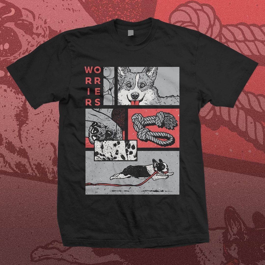 Worriers has a new t-shirt available and it has dogs on it so what more could you want? This was designed by illustrator Annie Walter. I love her work and you should also check that out and hire her to make things for you. You can buy one of these over at the 6131 Records merch store!