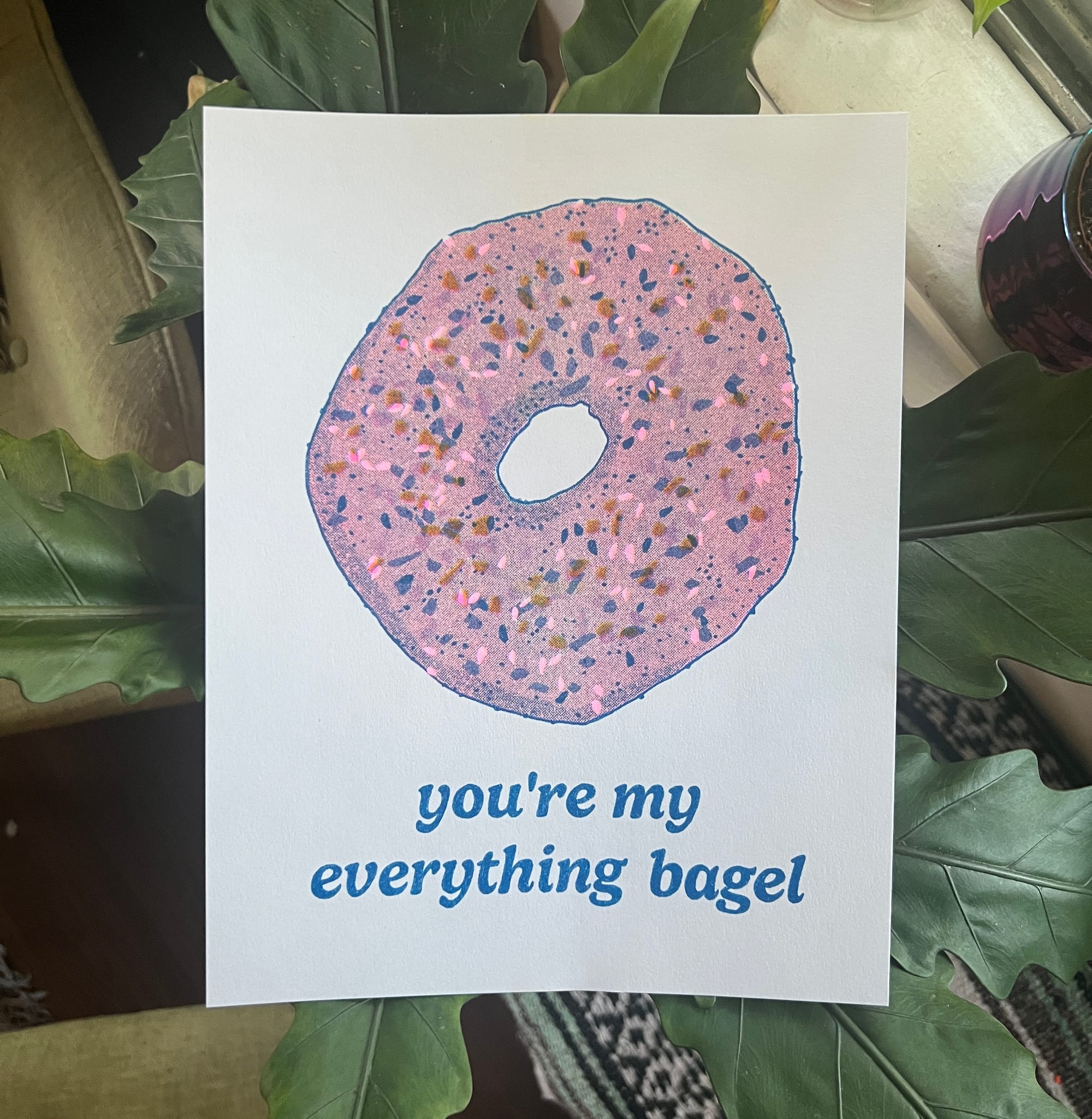 Today I'm also sharing a new print for Valentine's Day: You're My Everything Bagel, a letter-sized 3-color risograph print. Edition of 35, available now in my webstore with free shipping in the US.