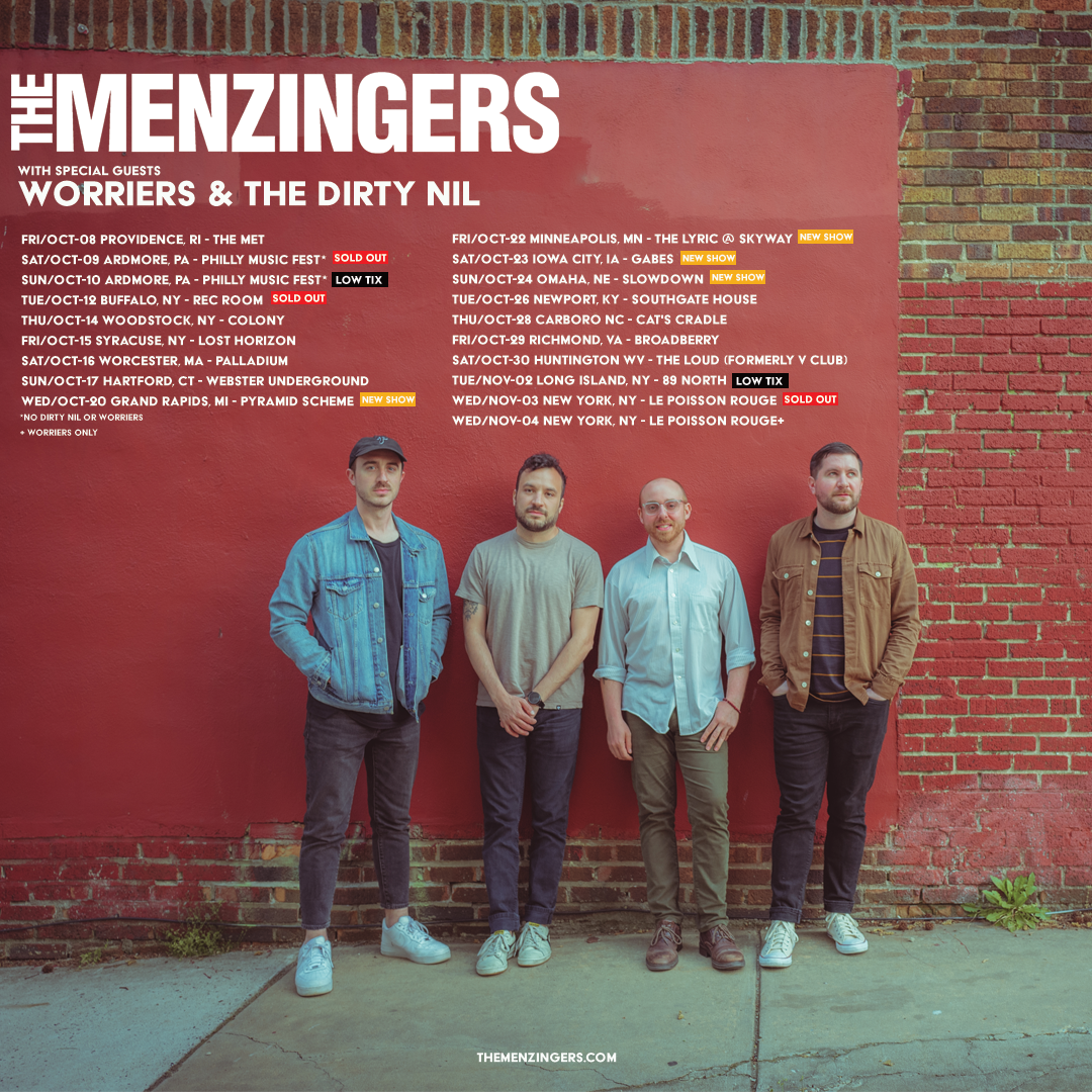 I'm very happy to announce that at long last Worriers are hitting the road again! We'll be supporting The Menzingers along with The Dirty Nil in October all over the eastern US. Many of these shows have been on sale for a bit so I would suggest getting your tickets ASAP if you'd like to go. Please be vaccinated! 🖤